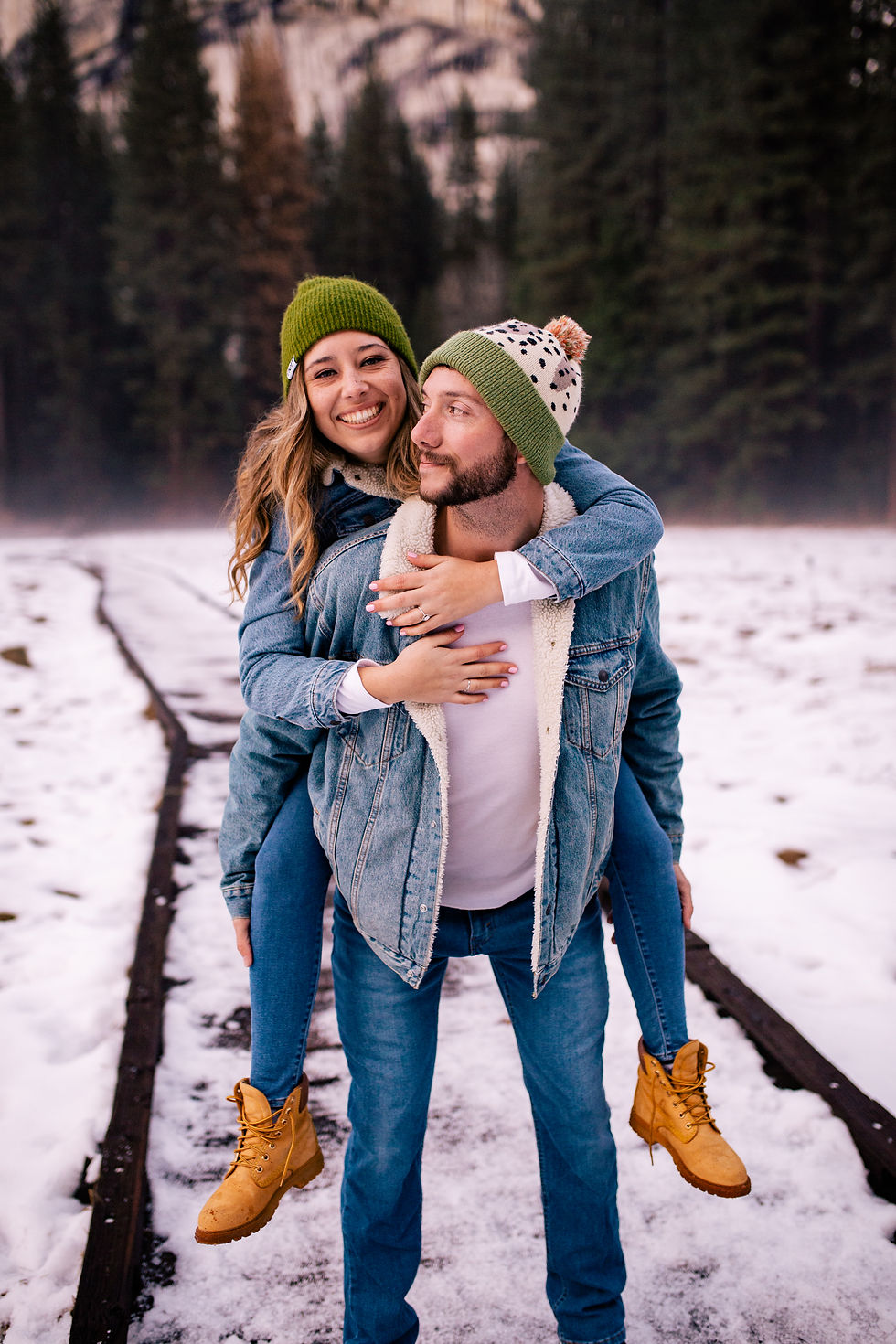 Wowza. Can we talk about a stunning couple accompanied by an incredible backdrop!? THAT is this session. I had never been to Yosemite in the winter despite going there during the summer for over 15 years. This park will inspire you by it's sheer vastness. We had a blast taking these photos over two days and of course, we left no trace because all good national park goers live by that rule! Couples that are willing to make a trek out of the city to a beautiful location encourage my little heart. I hope you enjoy these photos as much as I did taking them!!
